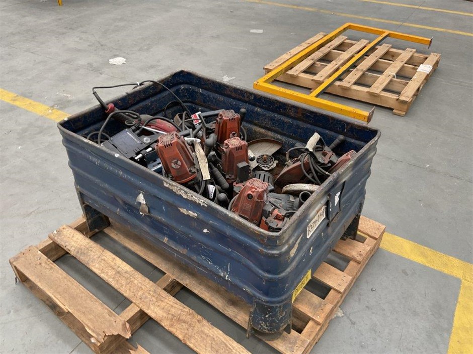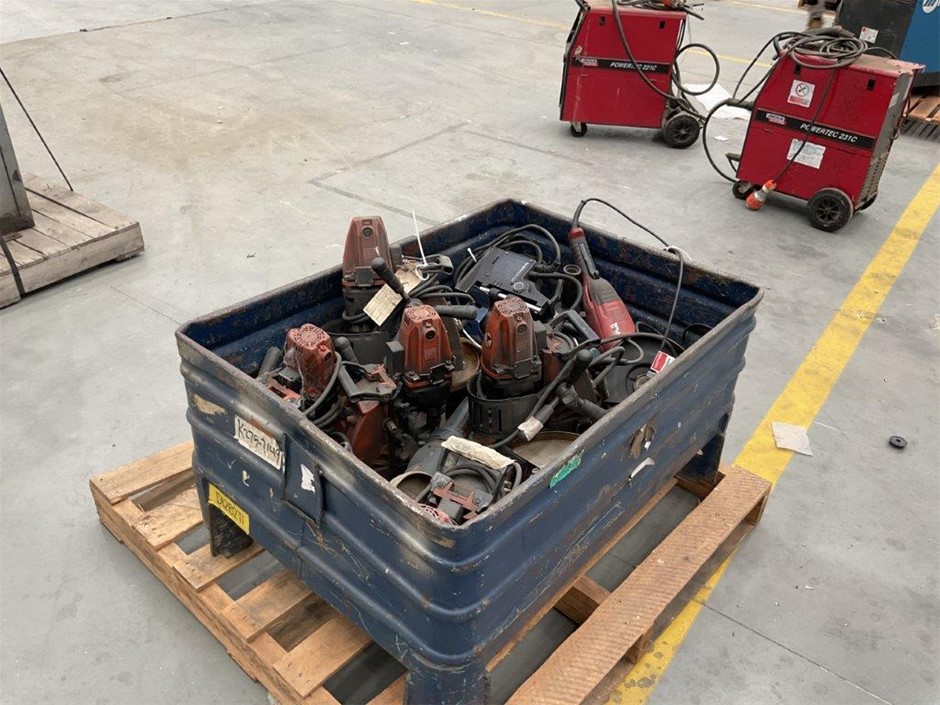 Pallet Comprising of Assorted Drill Presses and Assorted Angle Grinders