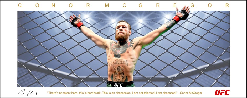 Features a facsimilie copy of McGregor`s signature & famous Conor McGregor quote.