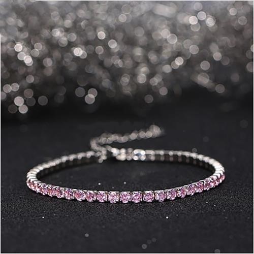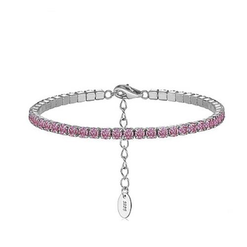 925 Sterling Silver Link Chain Bracelet with Simulated Diamonds Tennis Bracelet