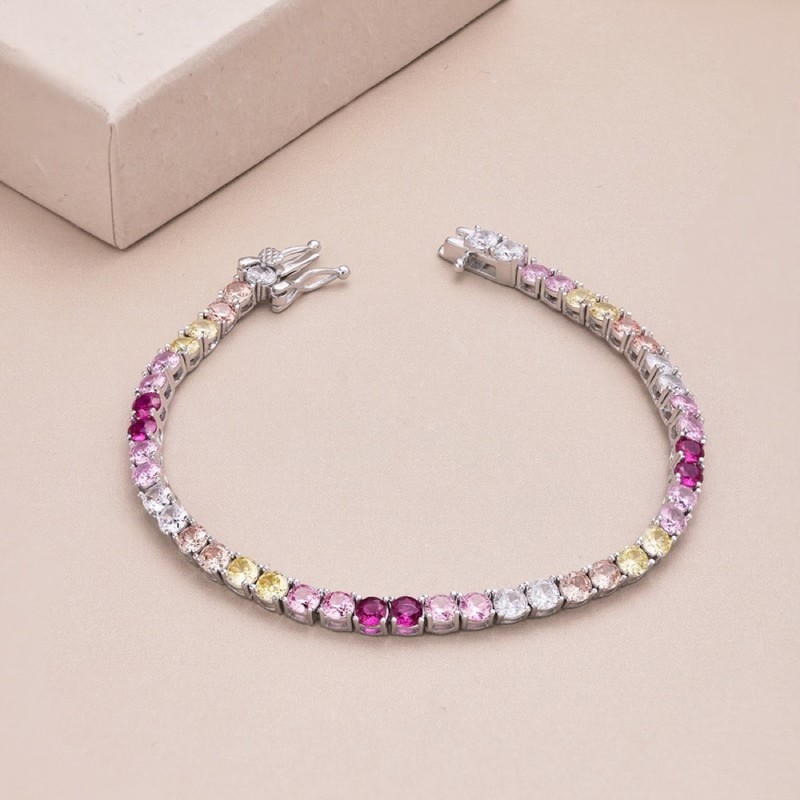 3.5mm Multi Colour Simulated Diamonds 925 Silver Tennis Bracelet-17cm