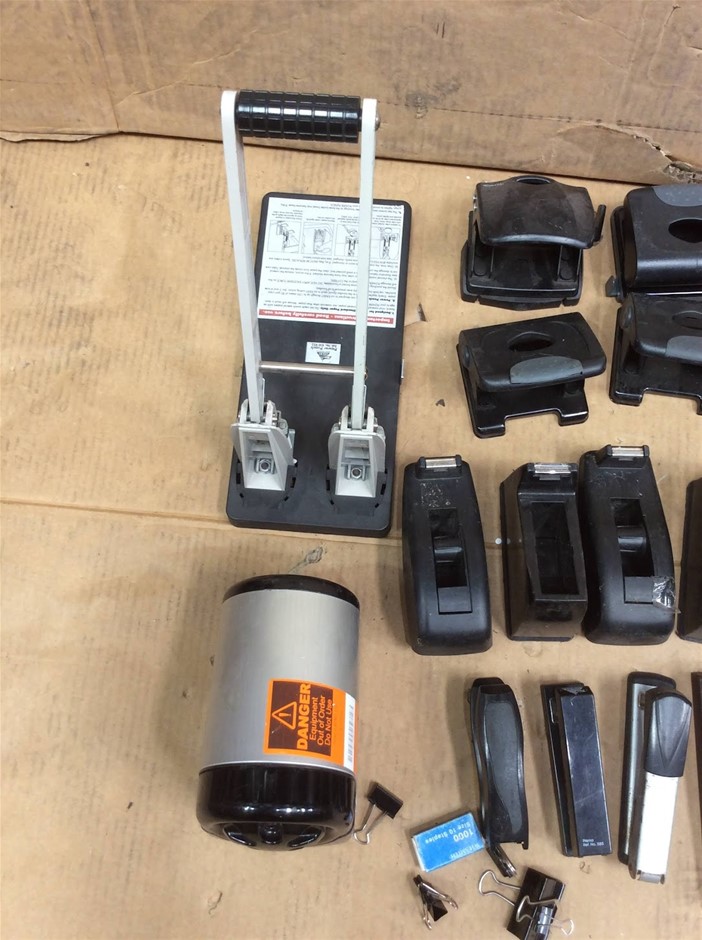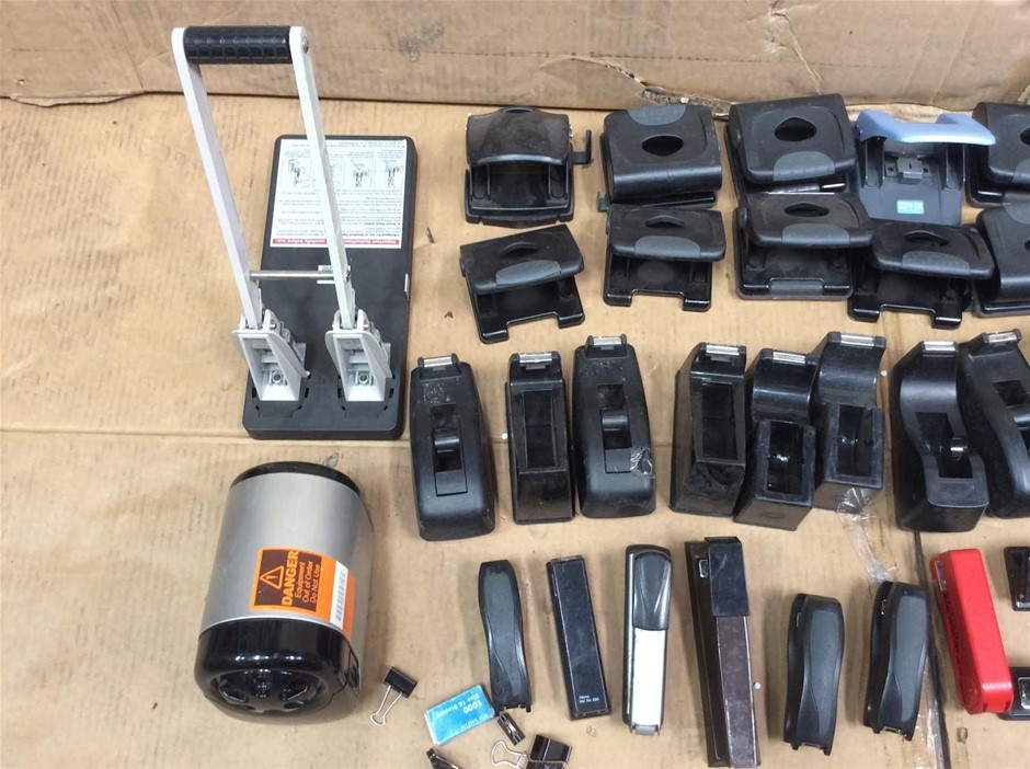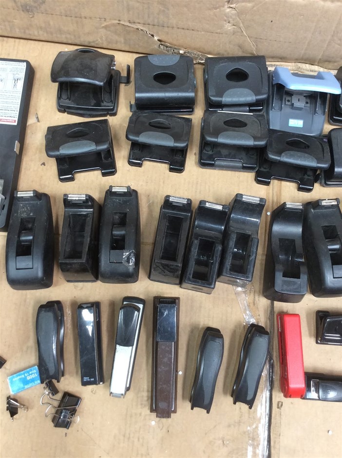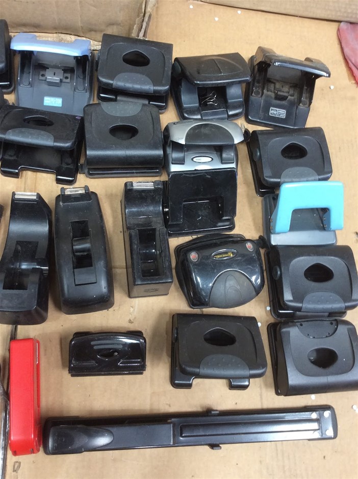 Mixed Brand Office Stationery Including Hole Punches + Staplers + Tape Dispensers
