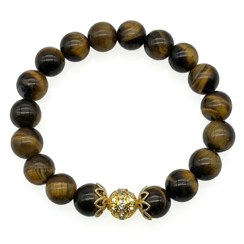 10mm Natural Tiger Eye Persian Love Gold Plated Rhinestone Necklace, Bracelet & Earring Set.