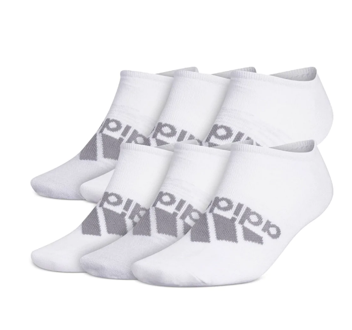 12 Pairs x ADIDAS Men`s SuperLite NoShow Socks, Shoe Size 6-12, White/Grey. NB: shop soil. (Code: 116163-WG-6/12-K2-S2) (330909-35)