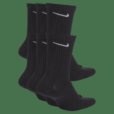 6 x NIKE Everyday Cushioned Crew Socks, Cotton, Black.