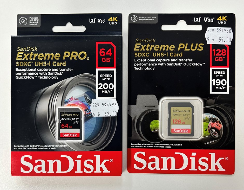 ScanDisk Extreme Pro SDXC UHS-I Card 64GB & Extreme Plus SDXC UHS-I Card128gb