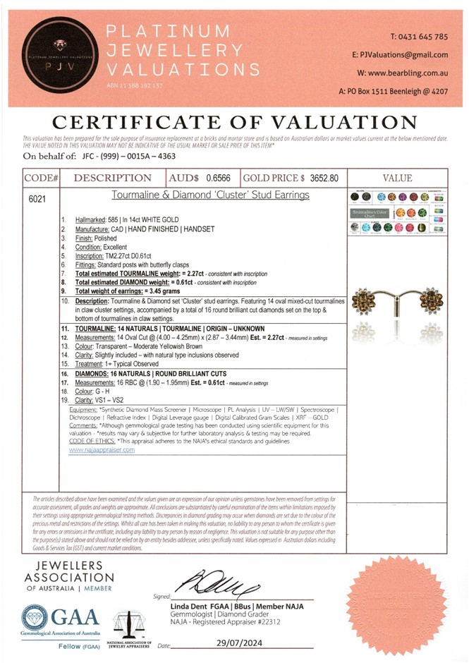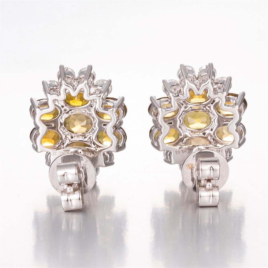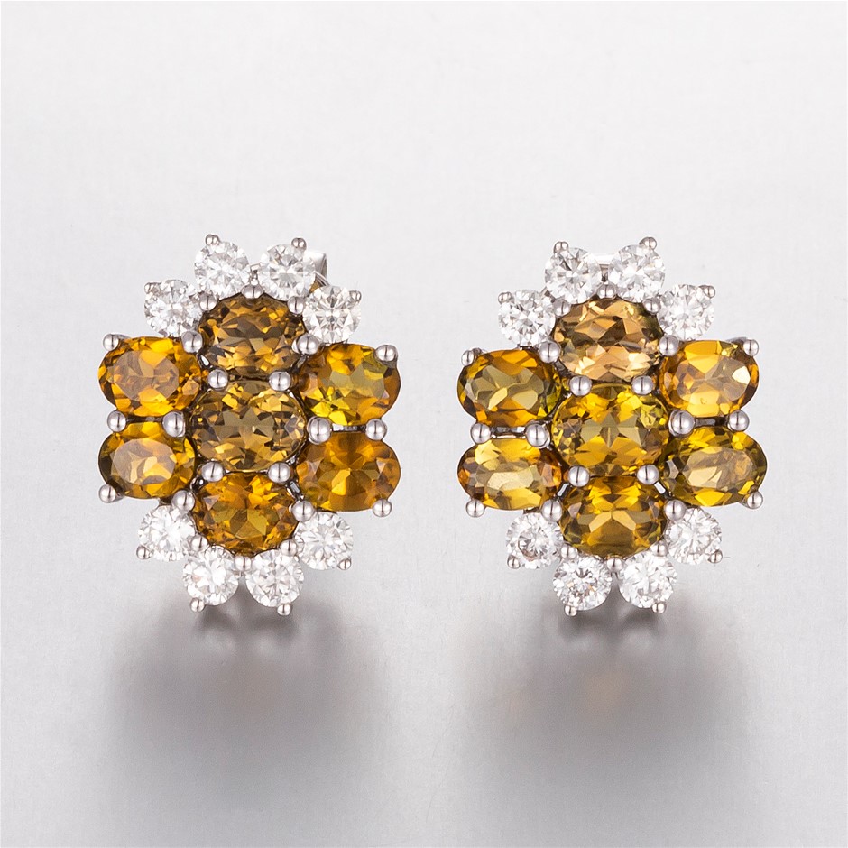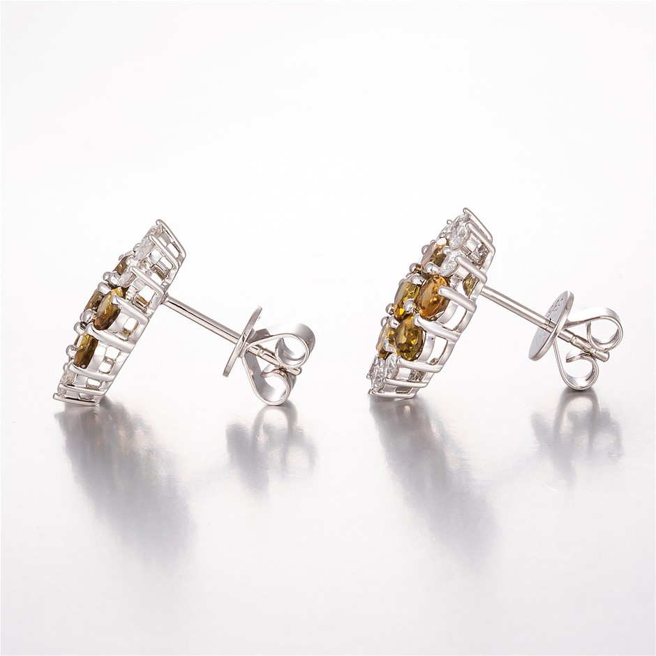 14CT White Gold Tourmaline and Diamond Floral Earrings