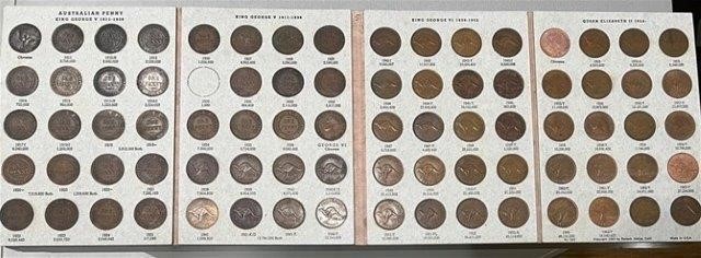 Complete Set of Australia Pennies Album 79 coins, only missing 1930 Penny