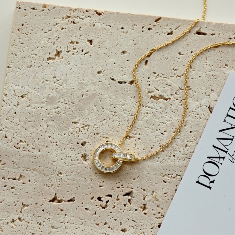 18K Gold Filled 925 Silver Simulated Diamonds Interlocking Necklace