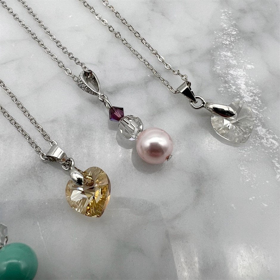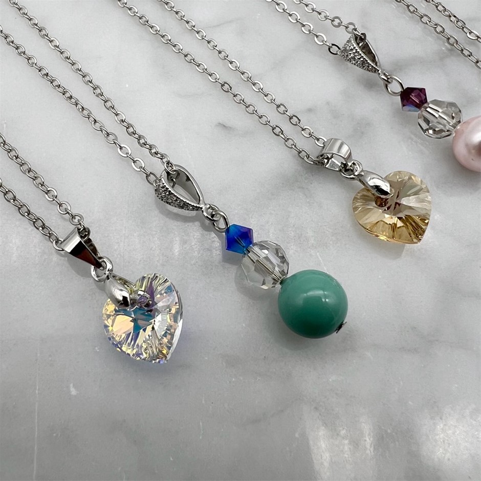Assorted Genuine Swarovski® Austrian Crystal Pendant Necklaces - 5 Pcs