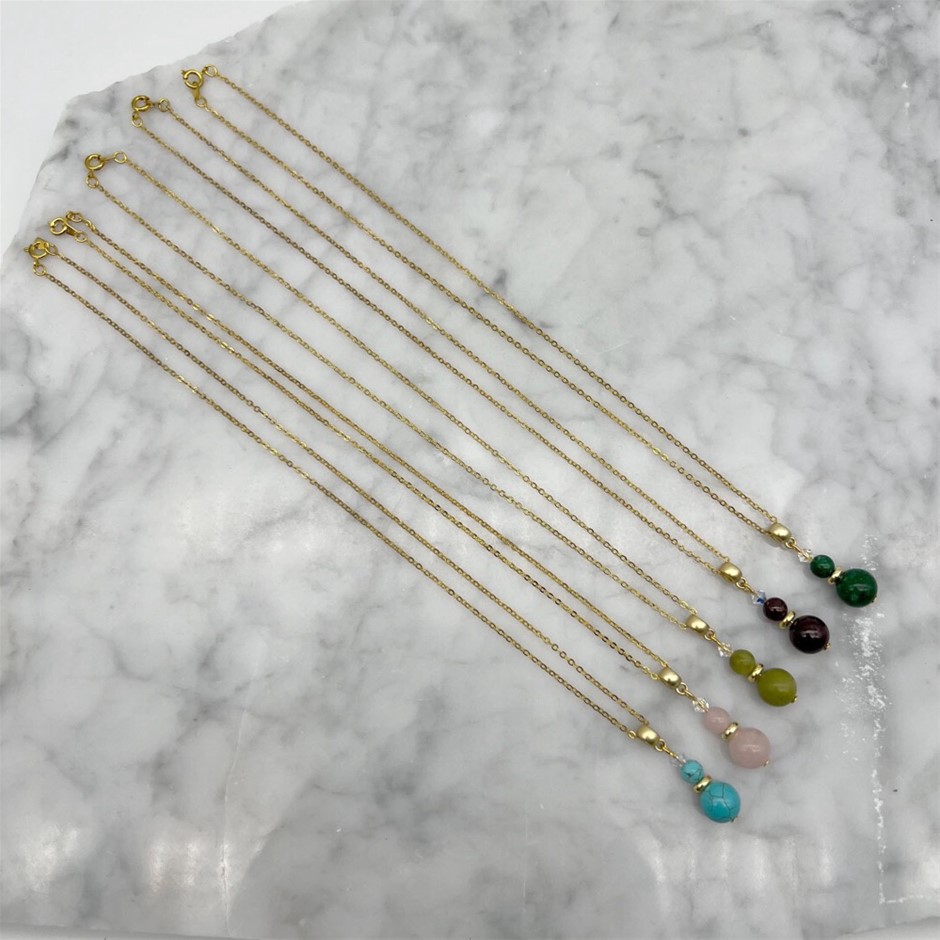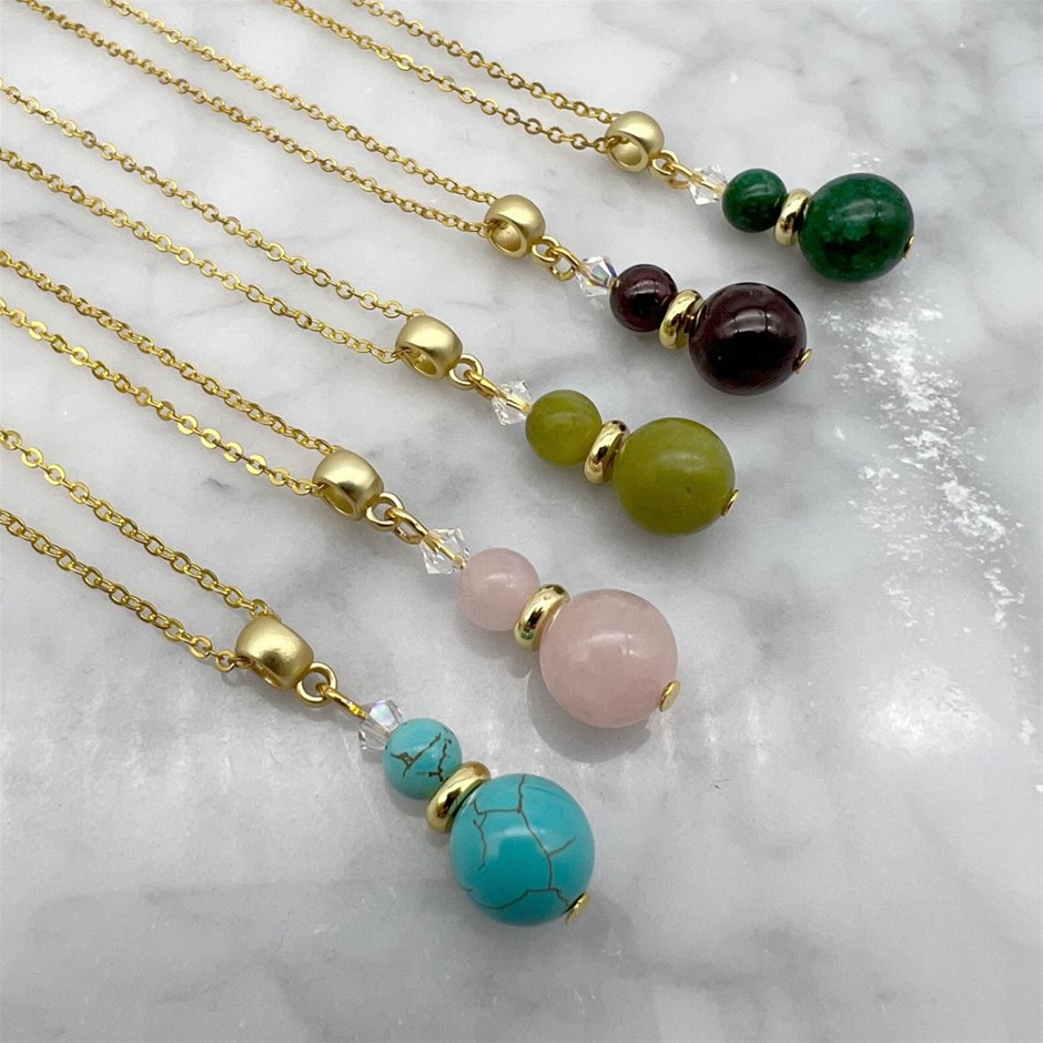 Assorted Genuine Gemstone & Swarovski® Austrian Crystal Pendant Necklaces - 5 Pcs