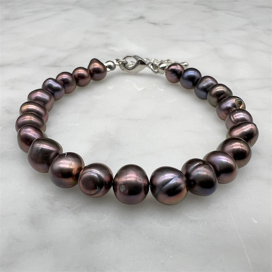 7-8mm Chocolate Potato Shape Pearl with Platinum Plated Bracelet