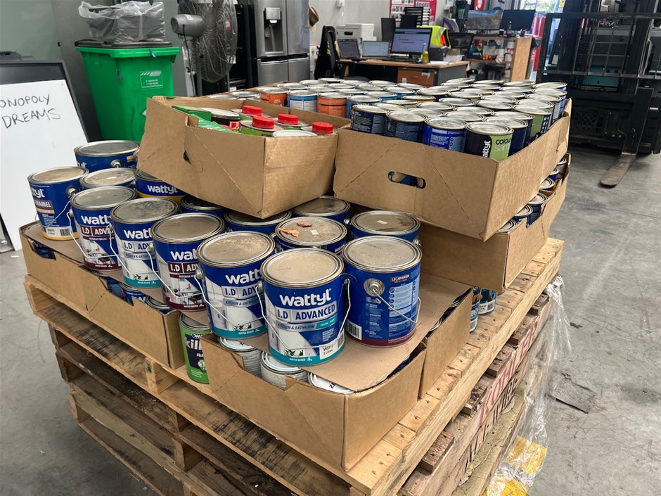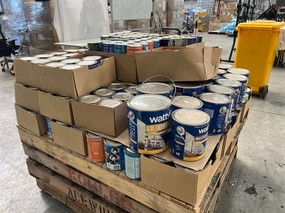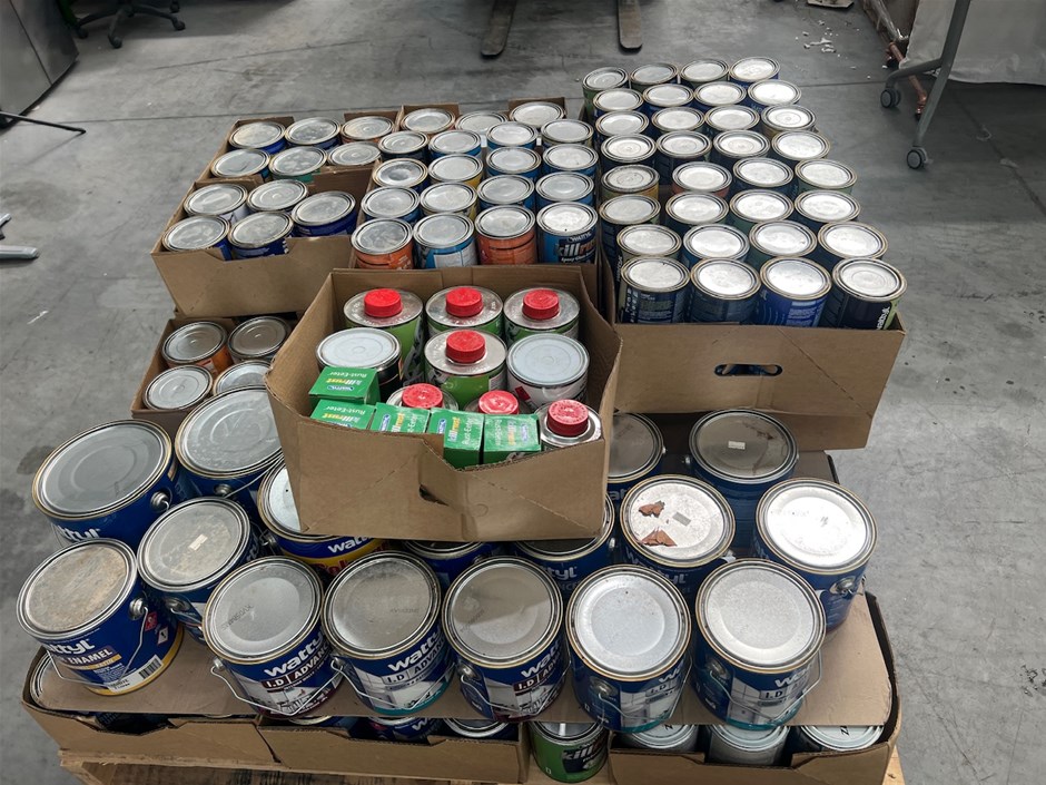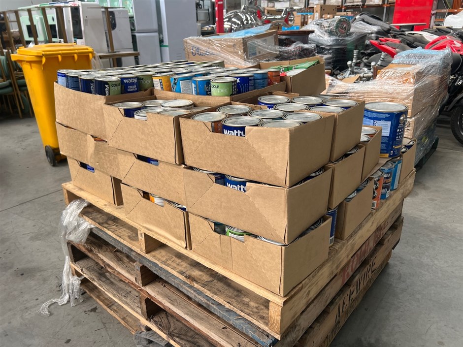 • Pallet comprising assorted 1Lt - 4Lt, 200ml to 500ml, Tins of paint, paint products, and Accessories.