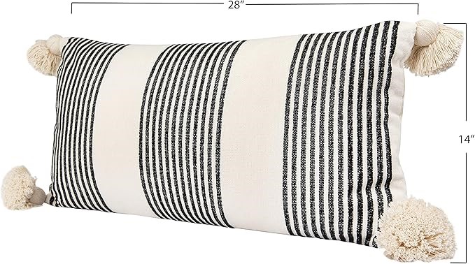 Creative Co-Op Cotton & Chenille Vertical Black Stripes, Tassels & Solid Cream Back Pillows, Pack of 1 (Code: B07VJ4DC4V) (140153-36)