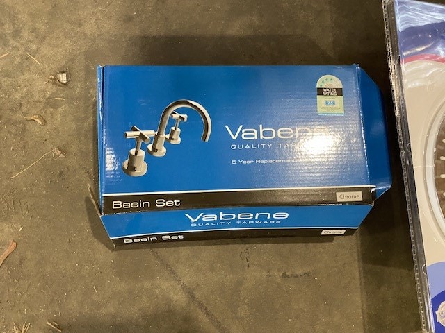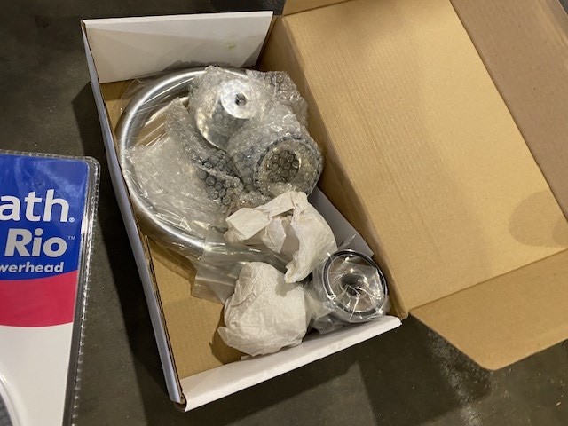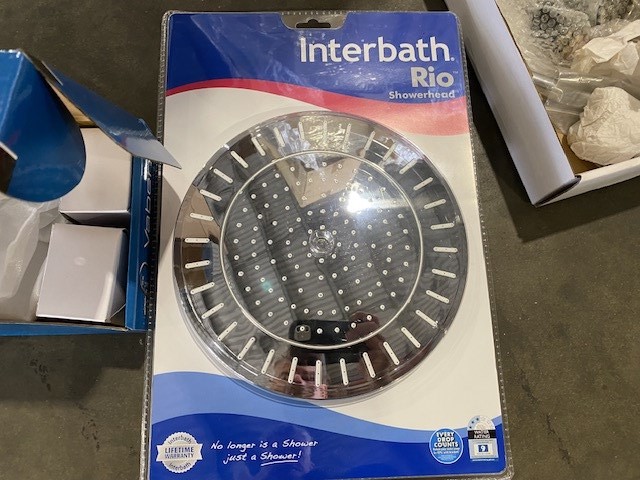 Large Qty of Unused Round Shower Heads, Basin Sets, Sundry Items