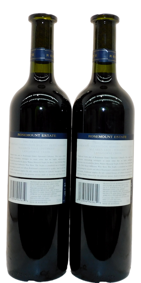 Rosemount Traditional Red Blend 2001 (2x 750mL), SA. cork.