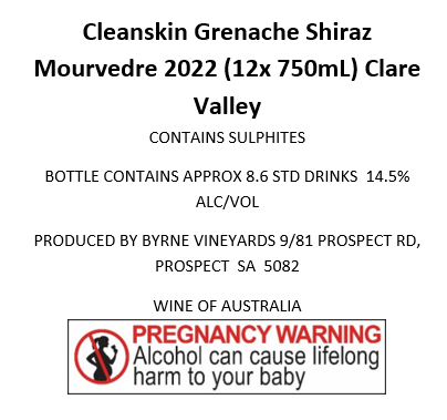 Cleanskin Grenache Shiraz Mourvedre 2022 (12x 750mL) Clare Valley