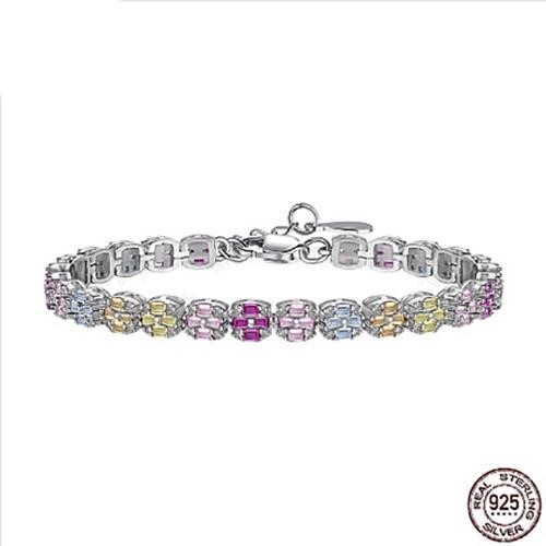 925 Sterling Silver Link Cross Tennis Bracelet with Simulated Diamonds