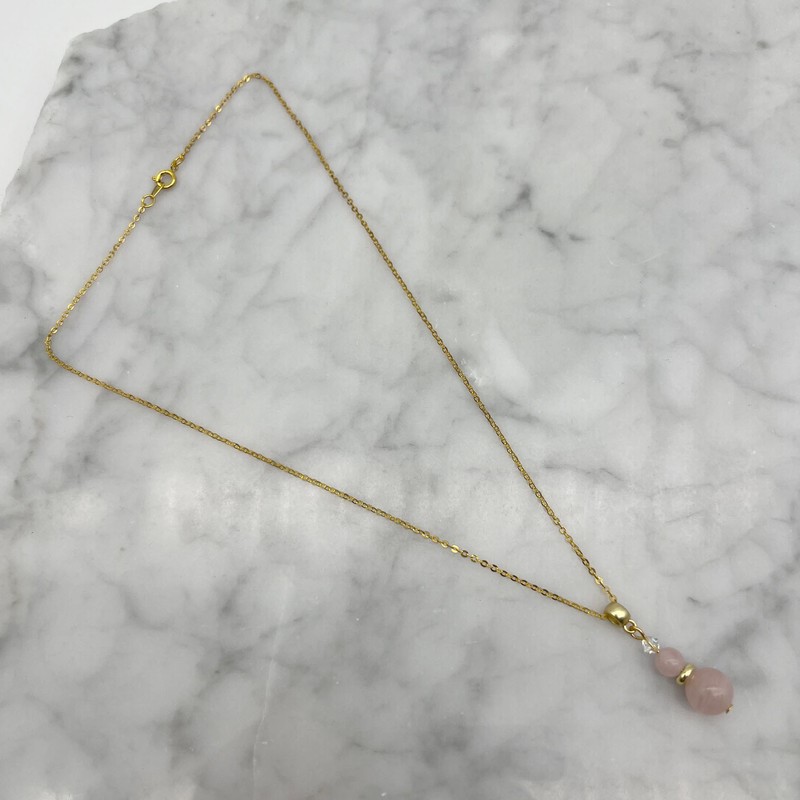 Genuine Rose Quartz & Swarovski® Austrian Crystal Gold Plated Pendant Necklace