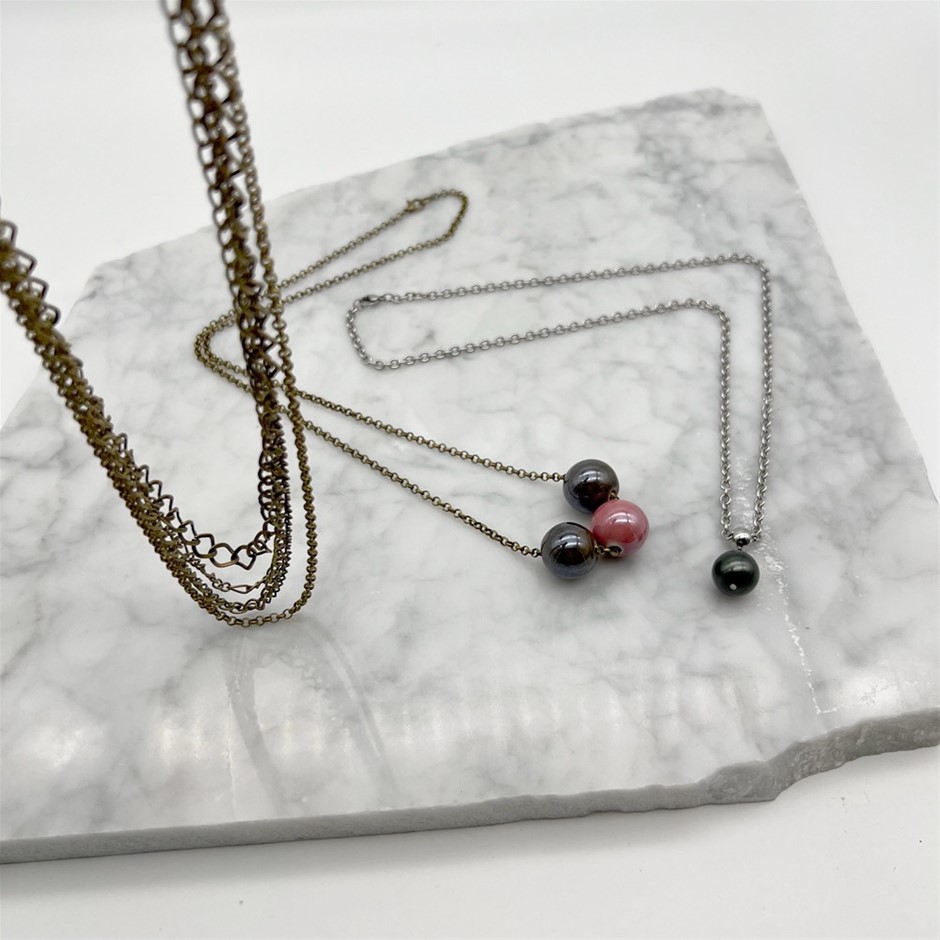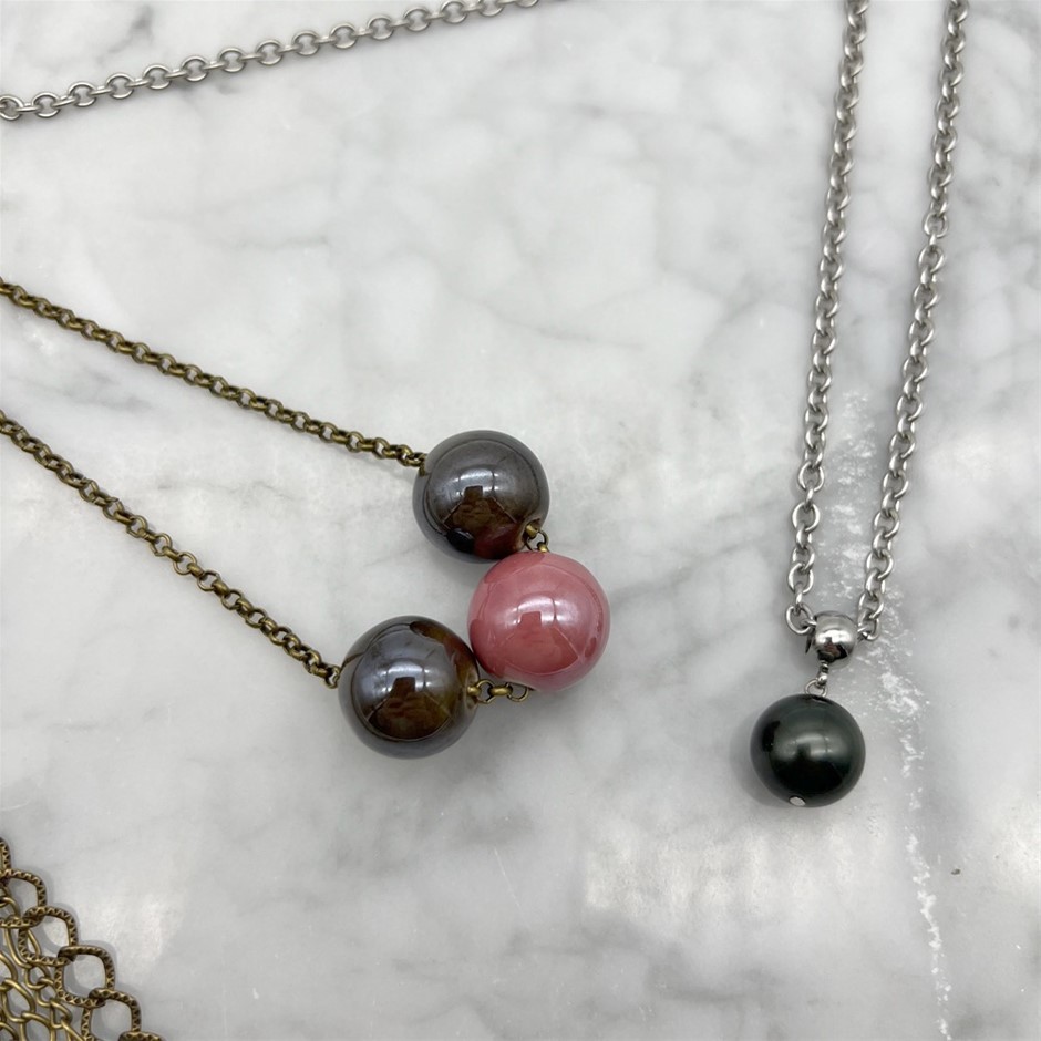 Assorted Ceramic & Shell Pearl Necklaces - 3 Pcs