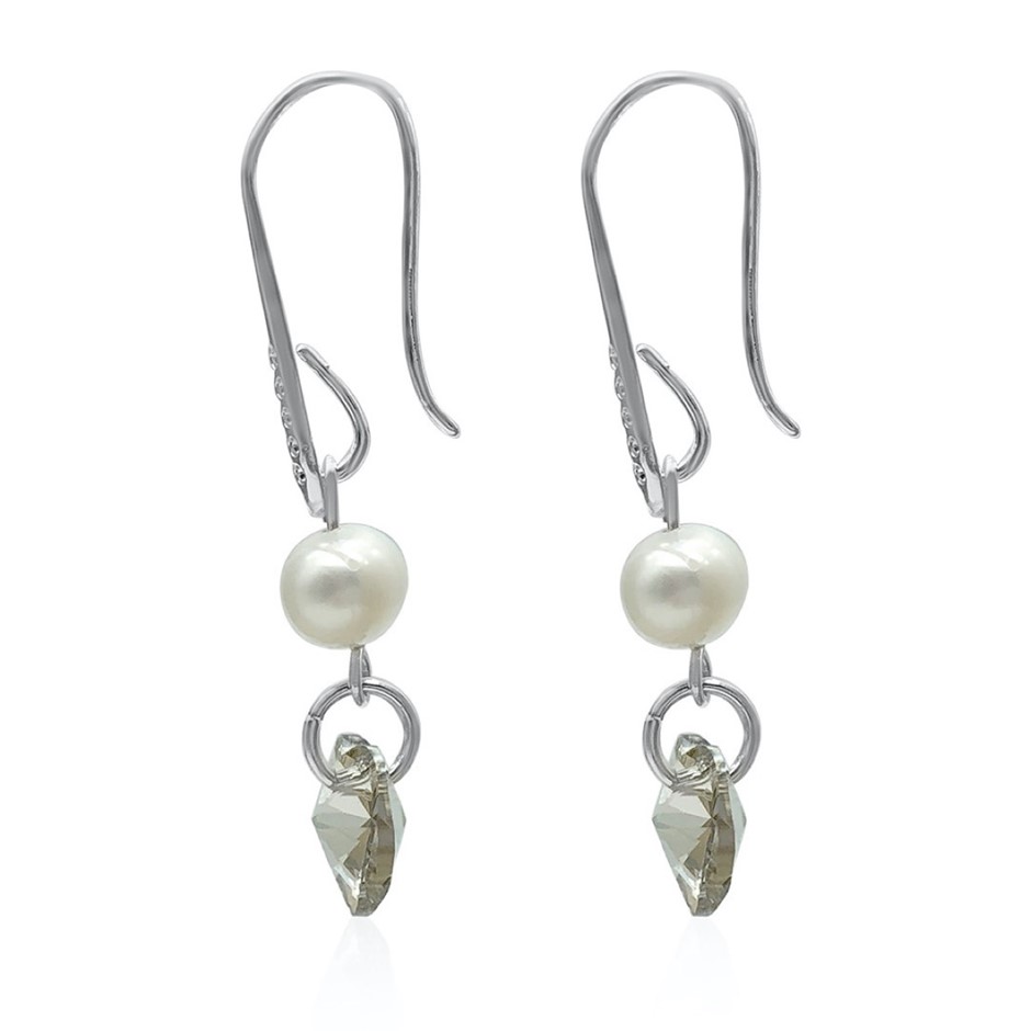White Freshwater Pearl Adorned with Swarovski® Crystals Drop Earrings.
