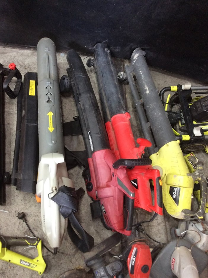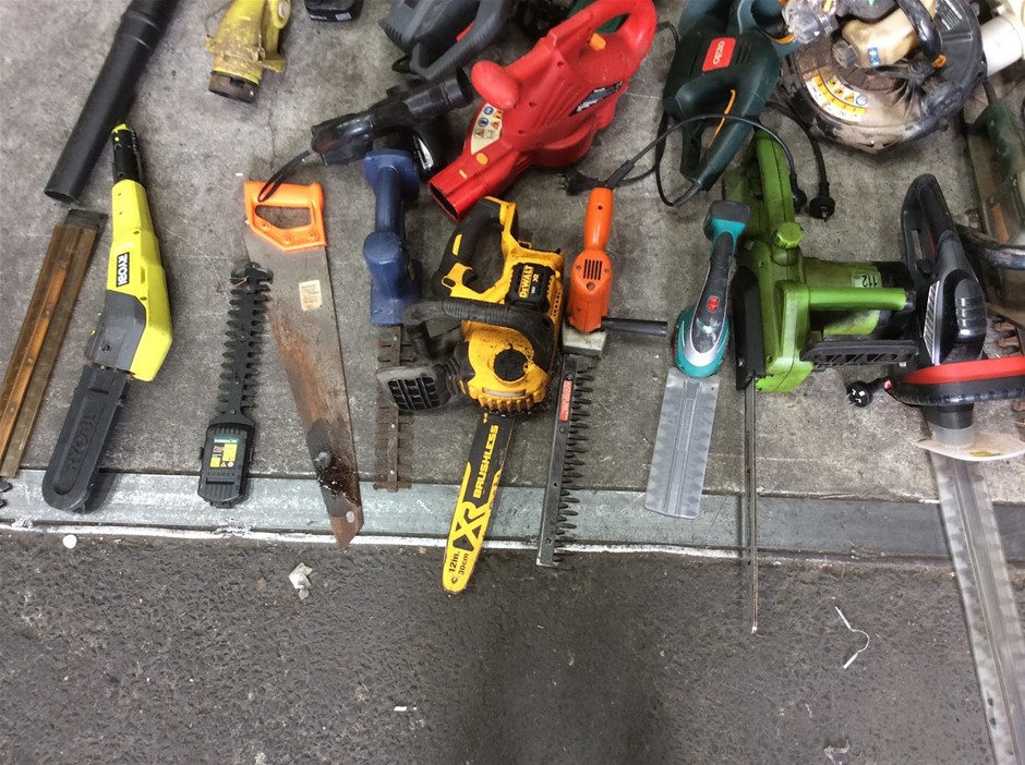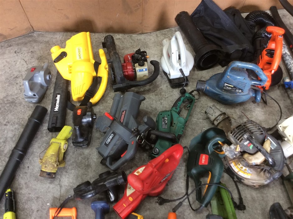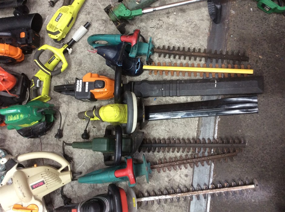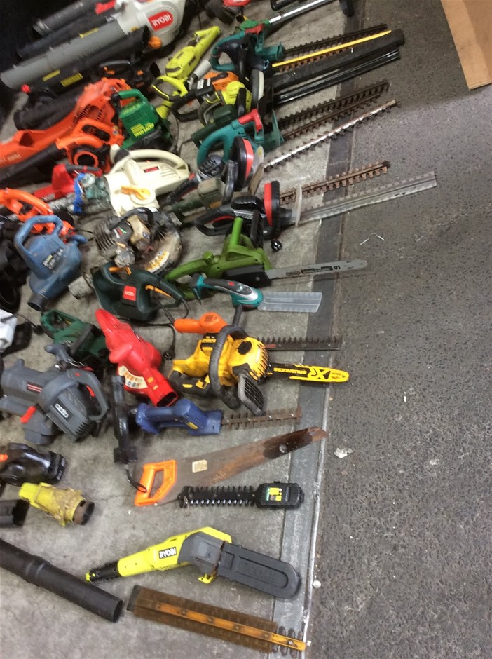 Mixed Electric Garden Tools Including Leaf Blowers + Hedge Trimmers + Chainsaws