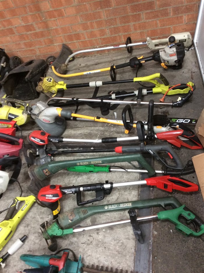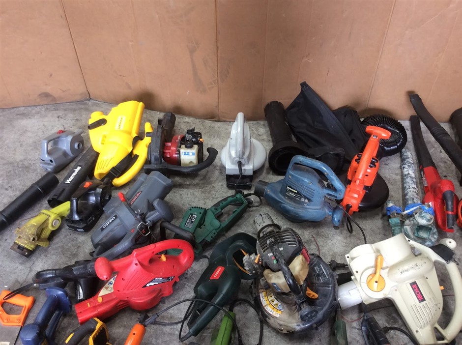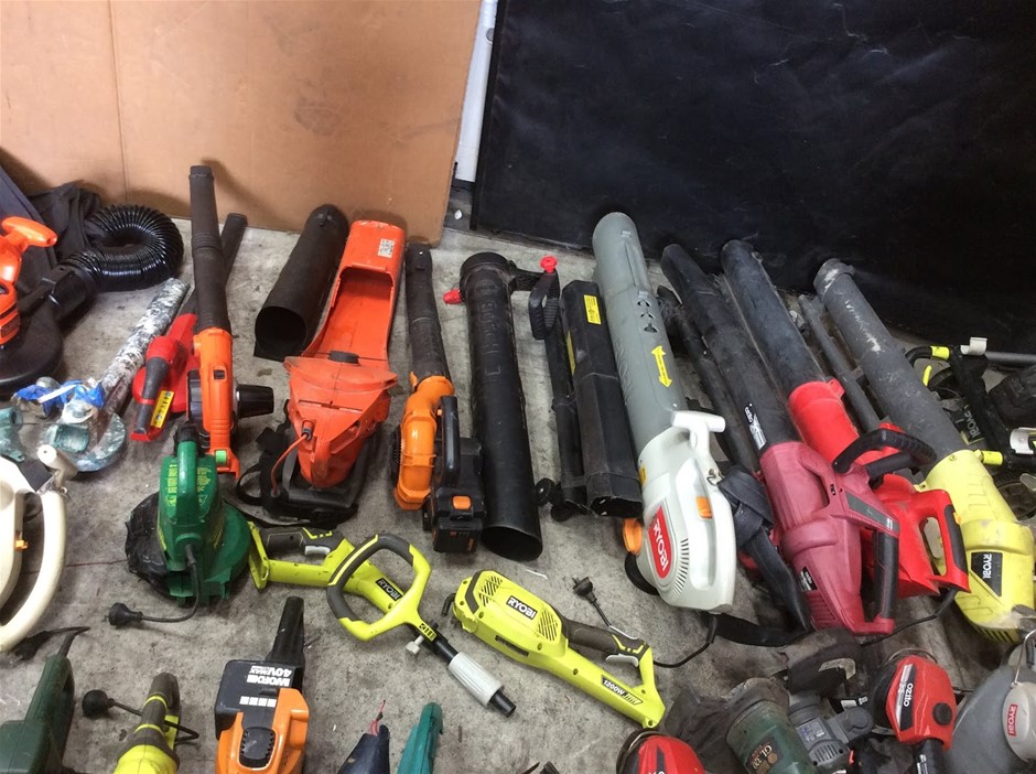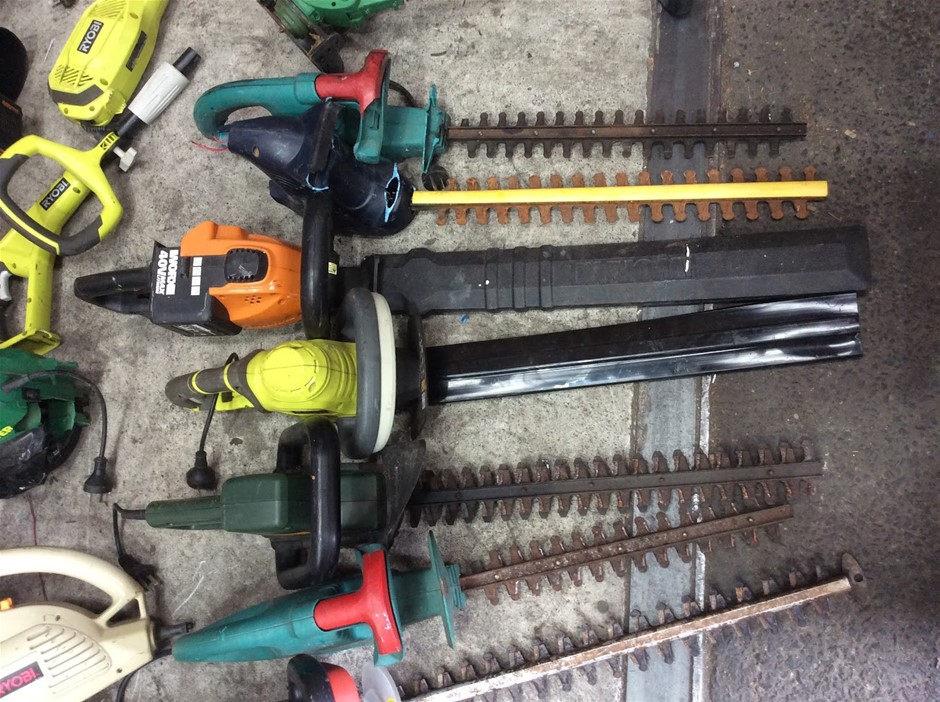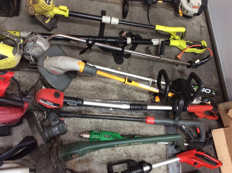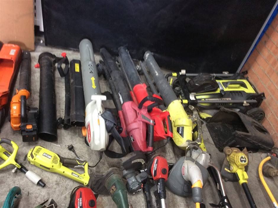 Mixed Electric Garden Tools Including Leaf Blowers + Hedge Trimmers + Chainsaws