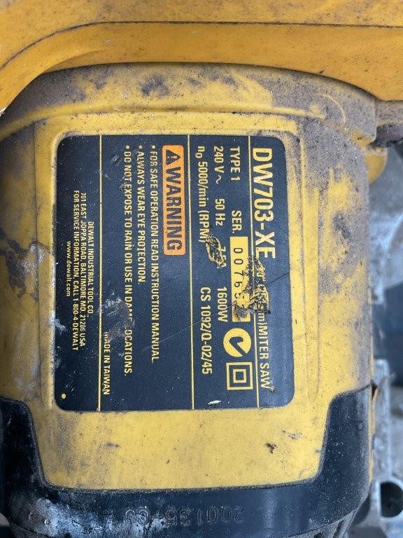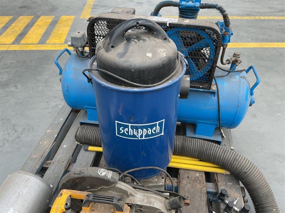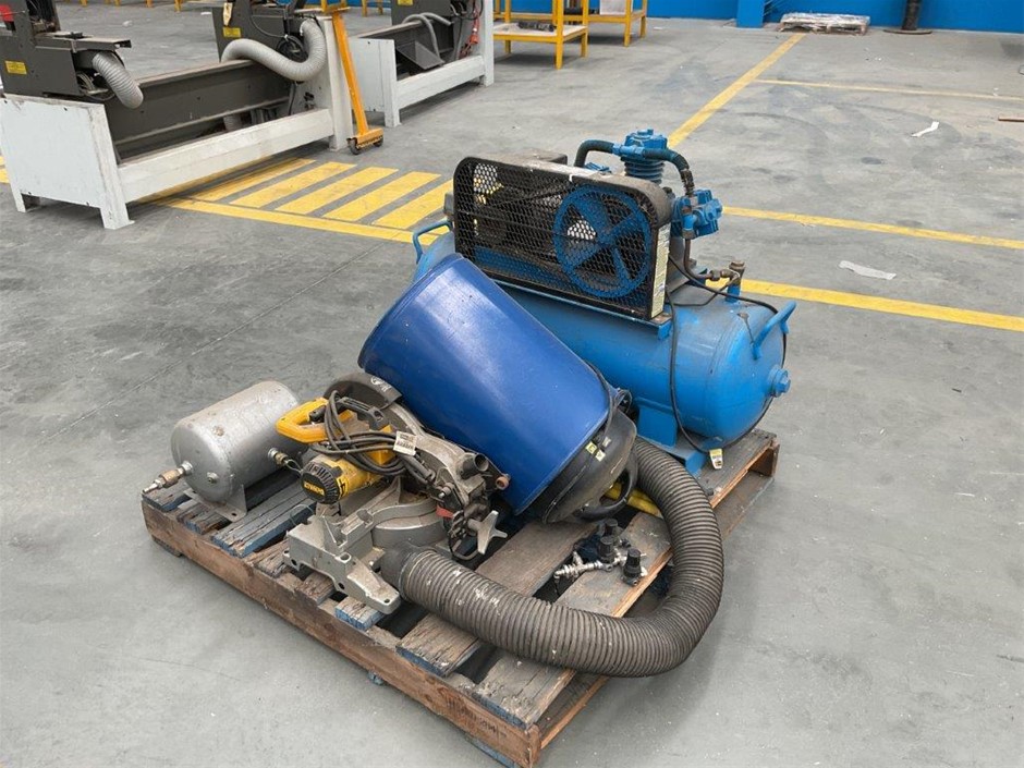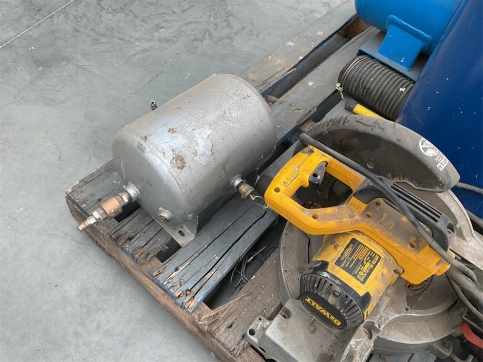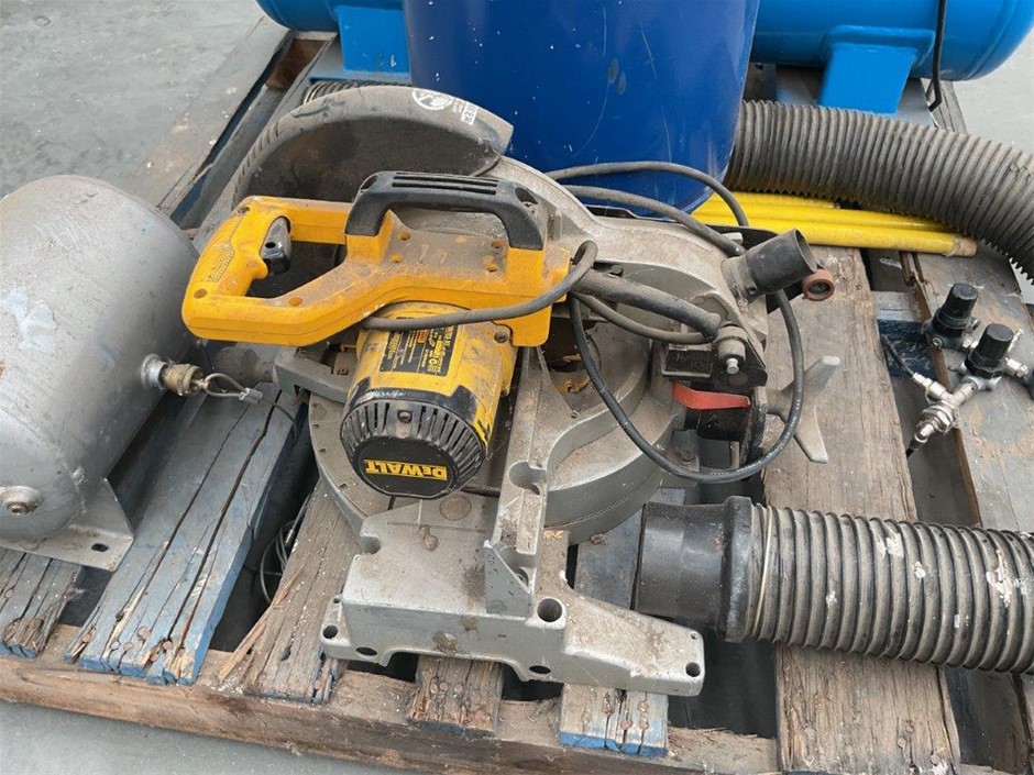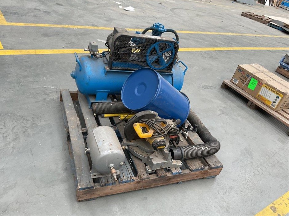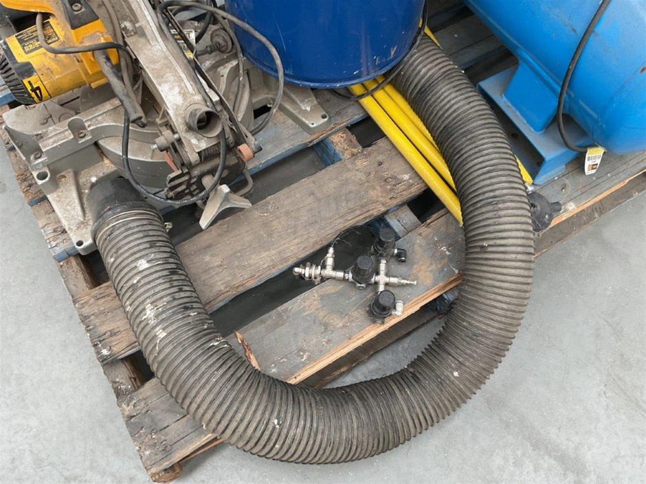 Pallet Comprising of Pulford Air and Gas Compressor, Dust Extractor and DeWalt Drop Saw