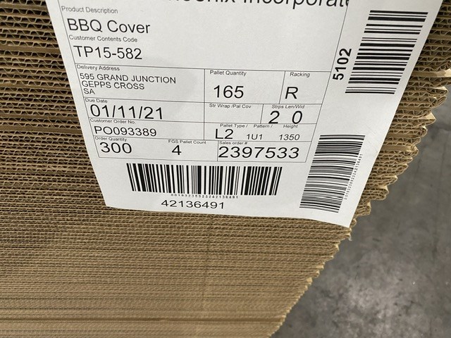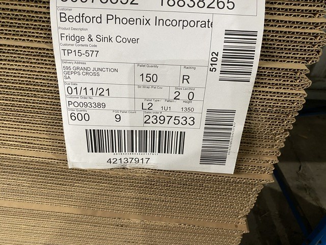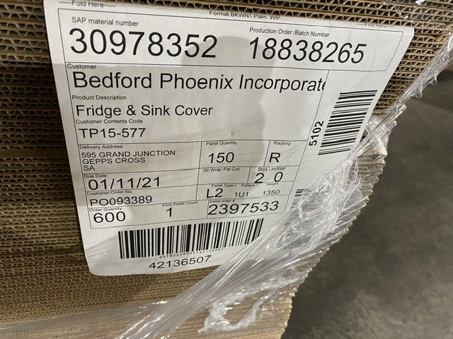• Consisting of 2 palletsof fridge and sink covers approx full pallet of 150 units, 1 pallet of BBQ covers, approx 165 units
