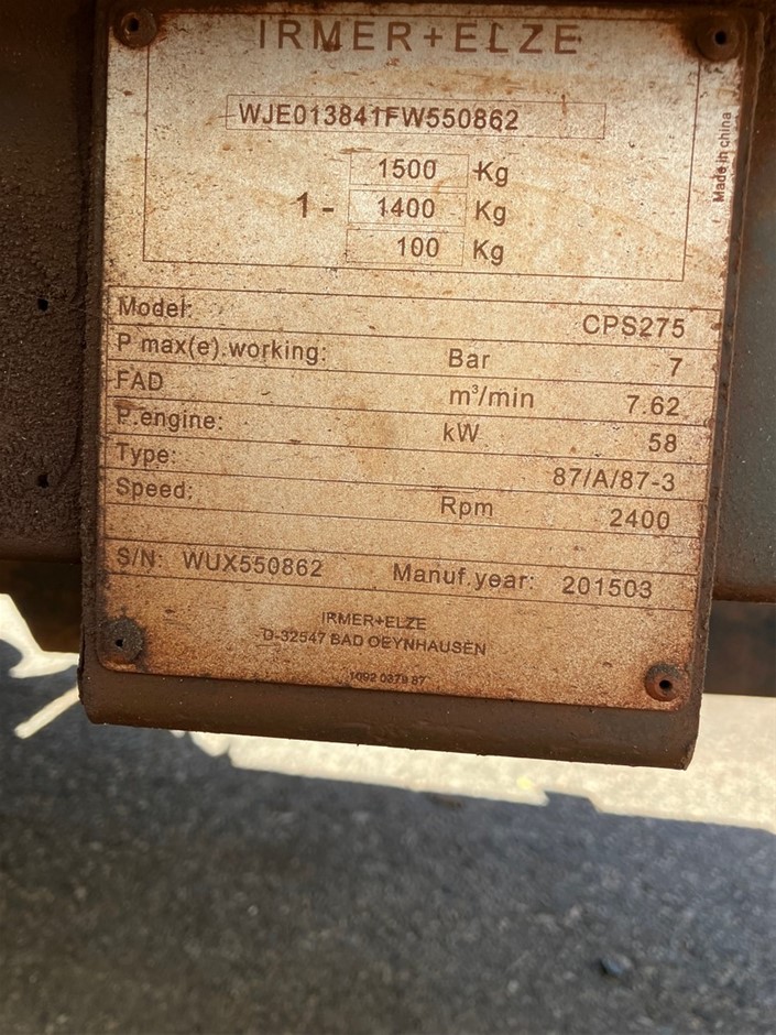 2015 CHICAGO PU CPS275 Compressor - 260cfm - Diesel - Kwinana