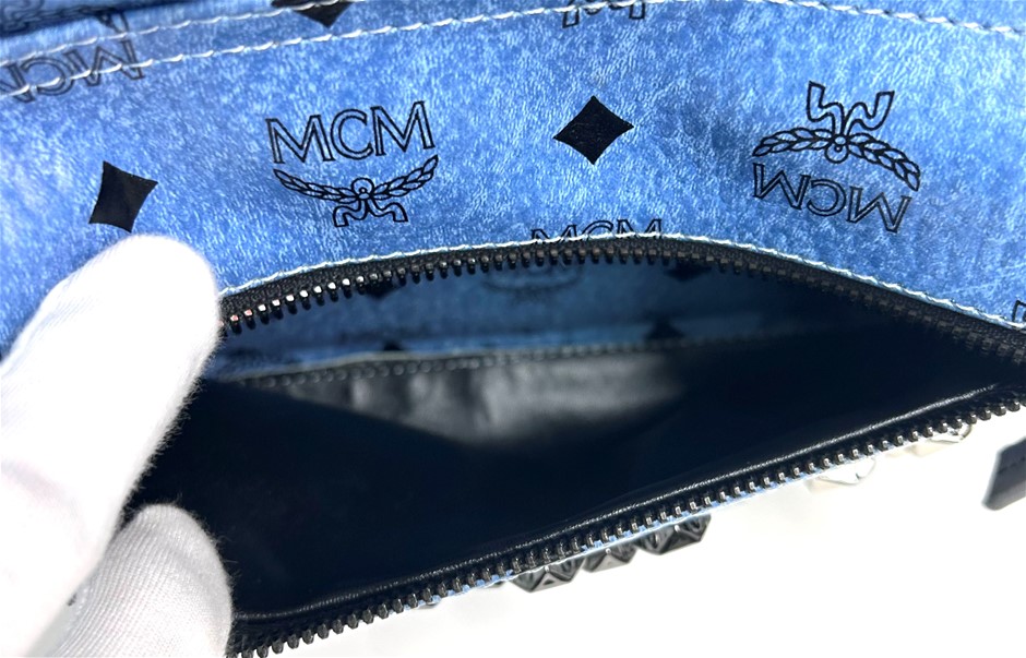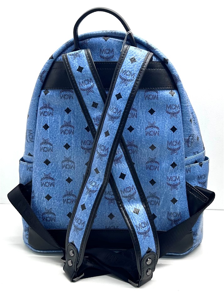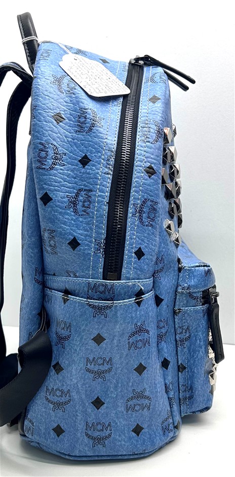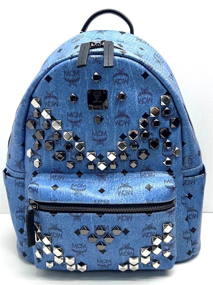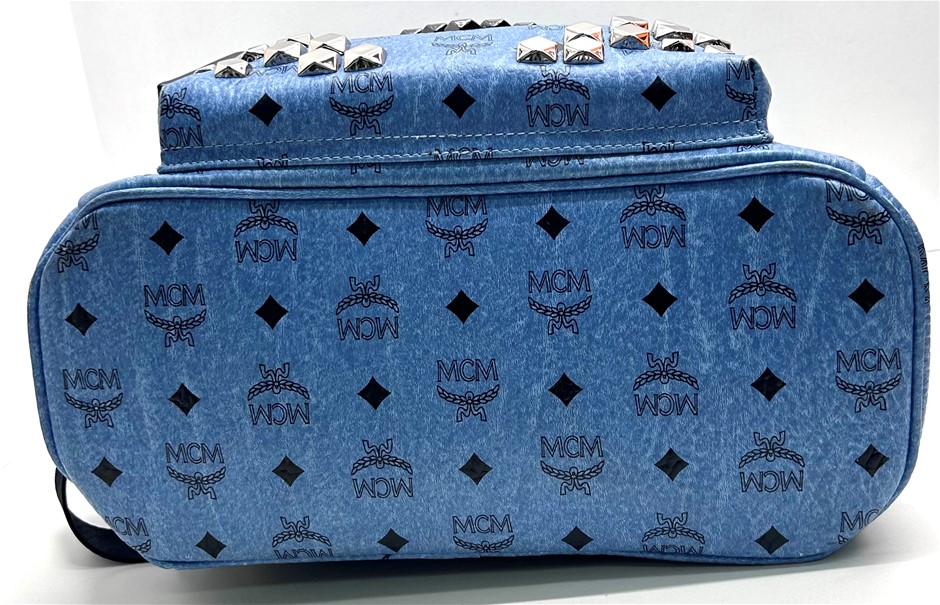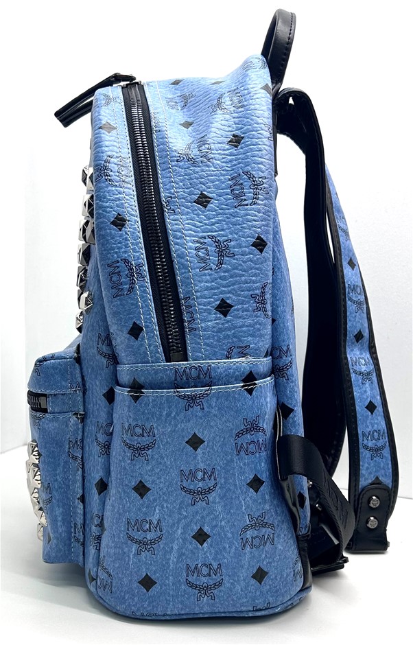 MCM Visetos Studded Stark M Blue/Black Backpack