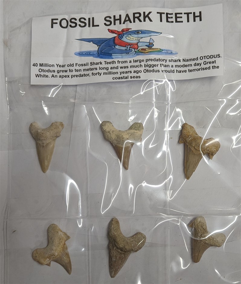 Six huge 40 Million year old Fossil Shark teeth from Morocco