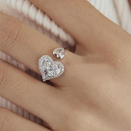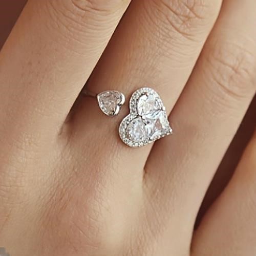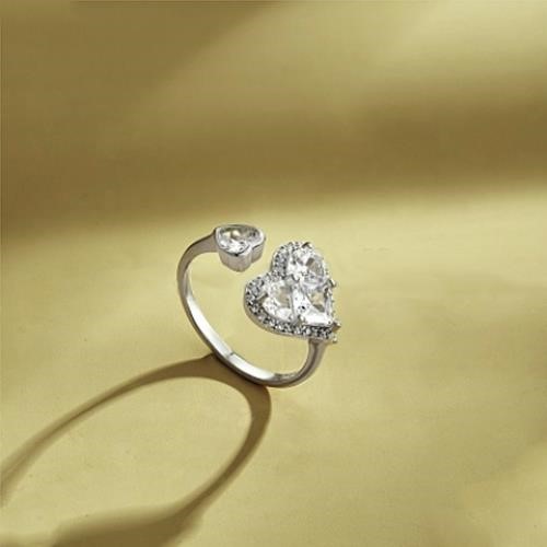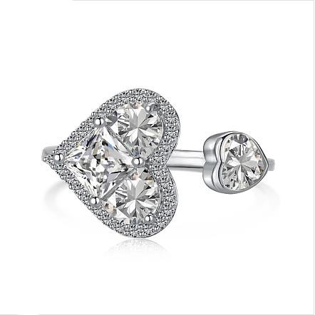 925 Sterling Silver Heart Open Cuff Ring with Simulated Diamonds - Size 7