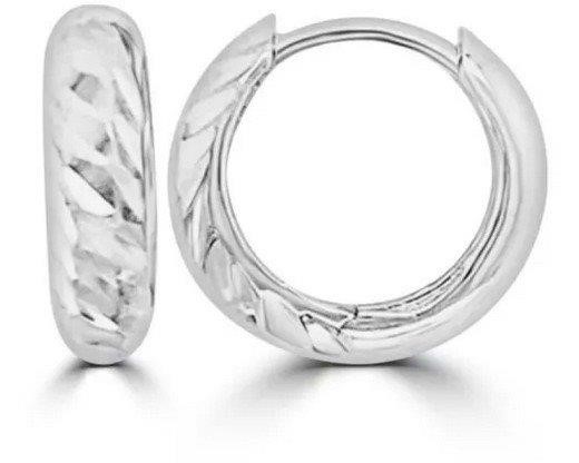 9K WHITE GOLD TEXTURED HOLLOW CREOLE EARRINGS 9mm