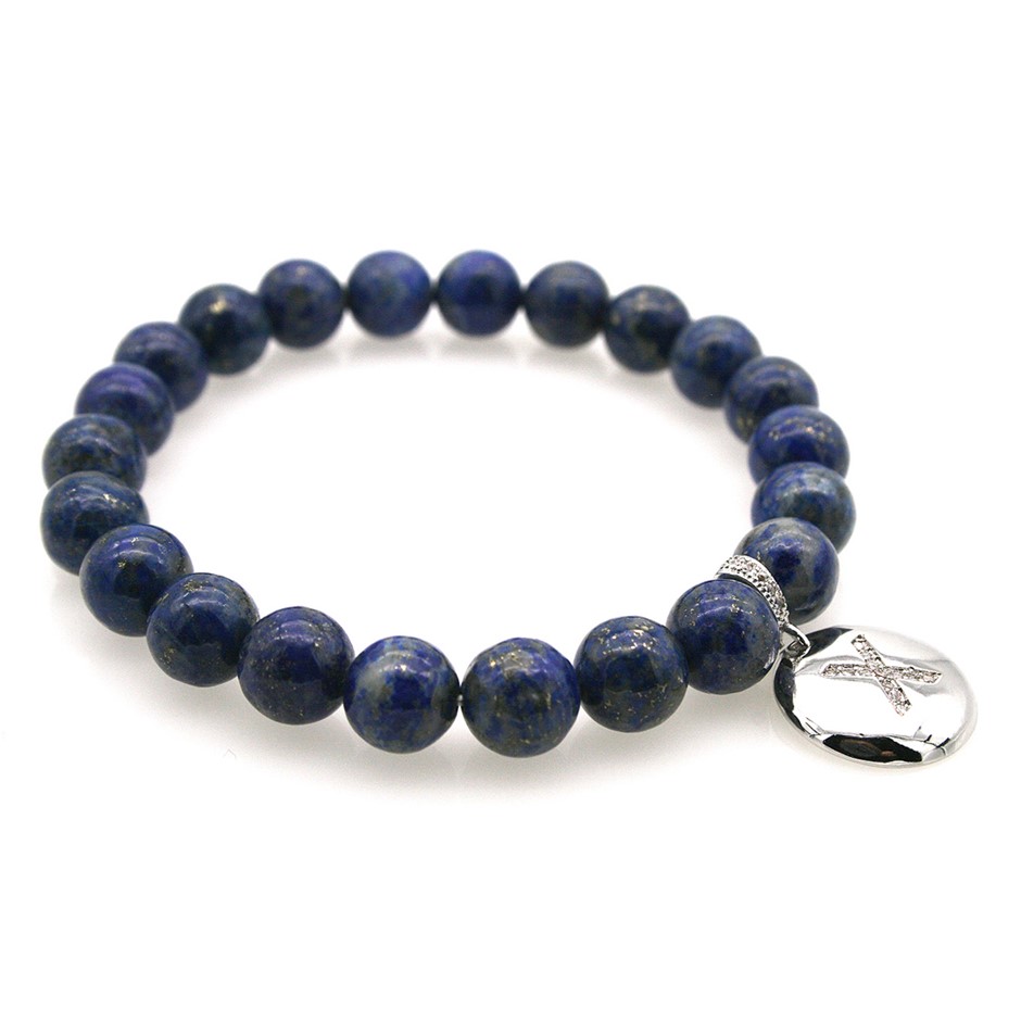 Round Lapis Lazuli & Letter `X` Platinum Plated with CZ Bracelet