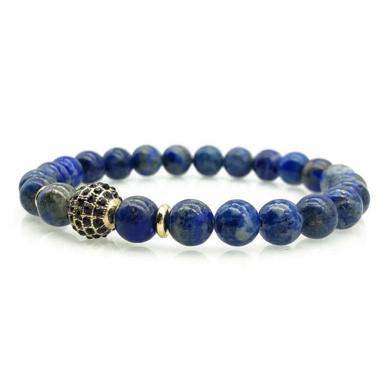 Men`s 8mm Lapis Lazuli & Golden Rhinestone Beaded Gemstone Bracelet.