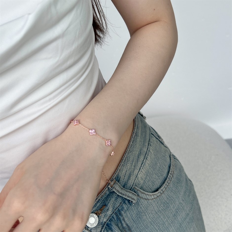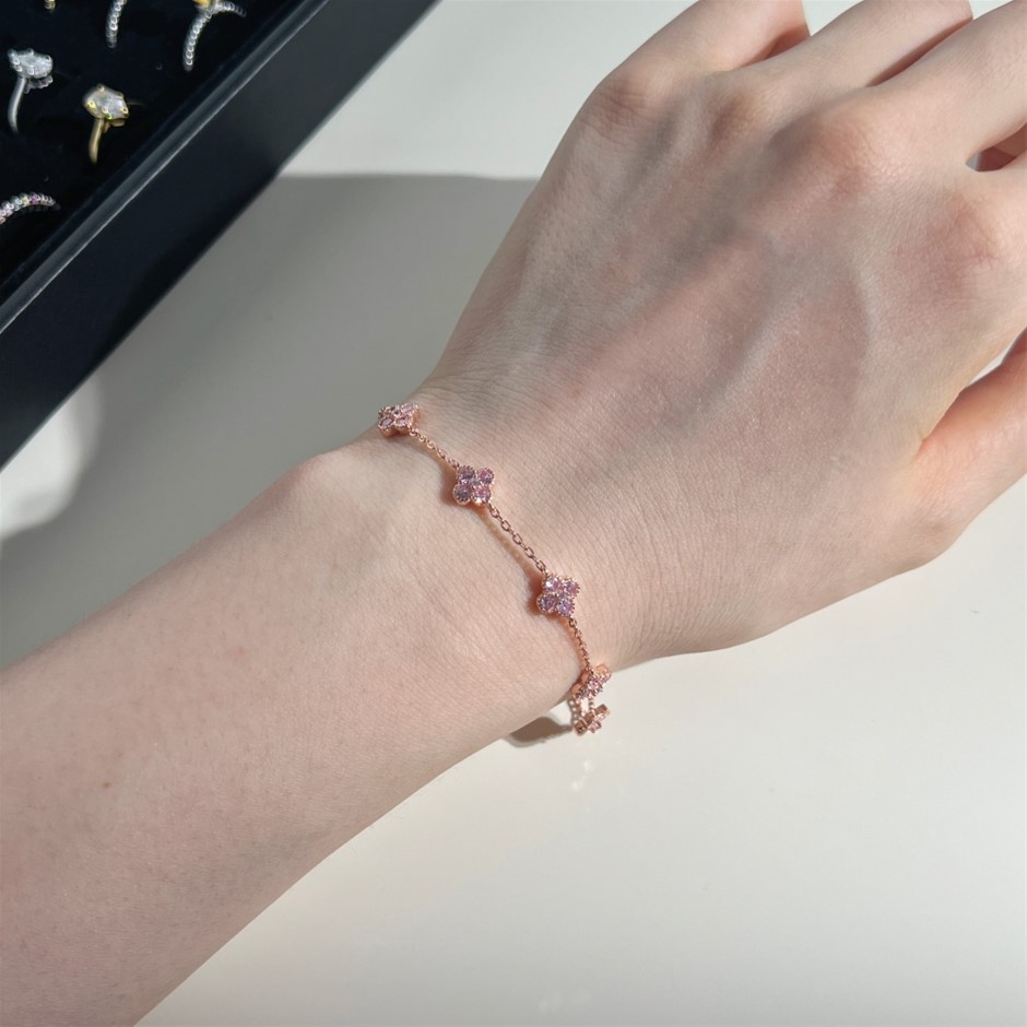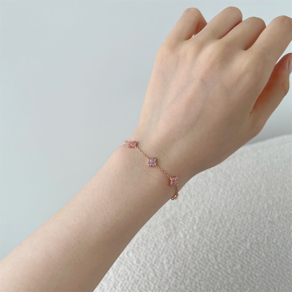 Dainty Four Leaf Clover Simulated Diamonds 925 Silver Tennis Bracelet