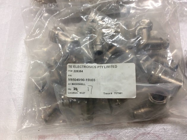 TE ELECTRONICS PTY LIMITED M85049/90-15N03&Interconnect Systems Pty Ltd M85049/24-19W Mixed Brand and Model Backshell (Lot of 28)