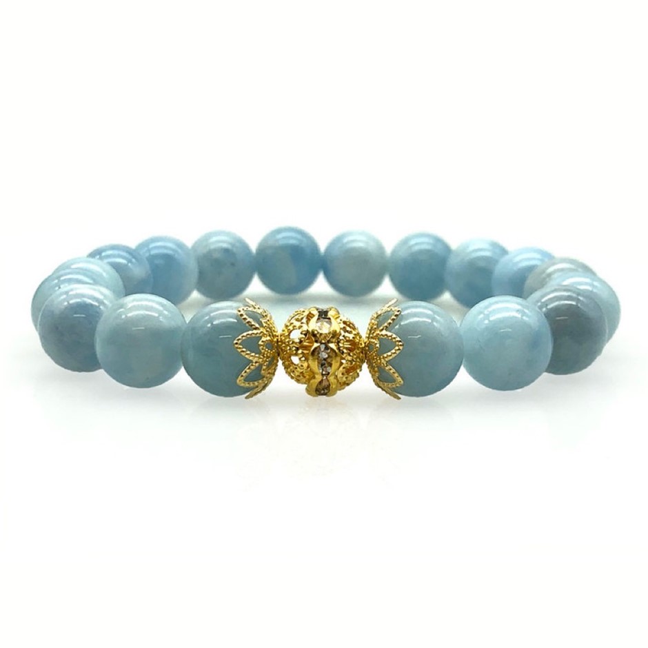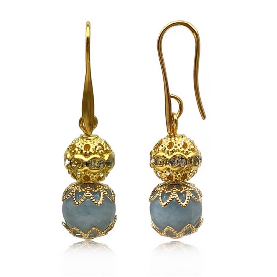 10mm Natural Aquamarine Persian Love Gold Plated Rhinestone Necklace, Bracelet & Earring Set.