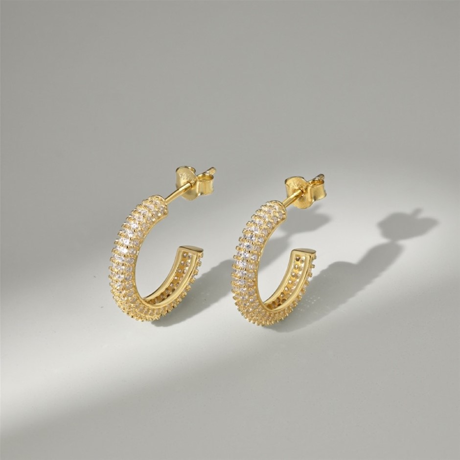18K Gold Filled 925 Silver Simulated Diamonds Hoop Earrings