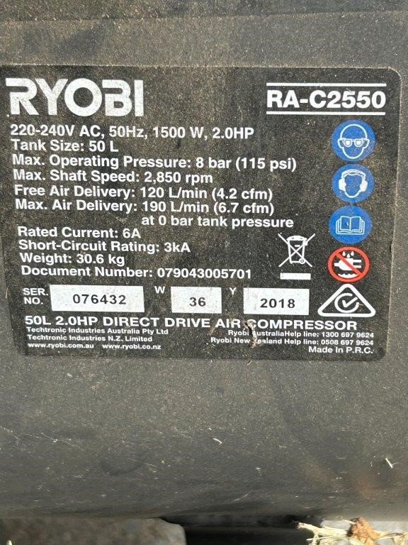 2018 RYOBI Airwave 50L Direct Drive Mobile Air Compressor
