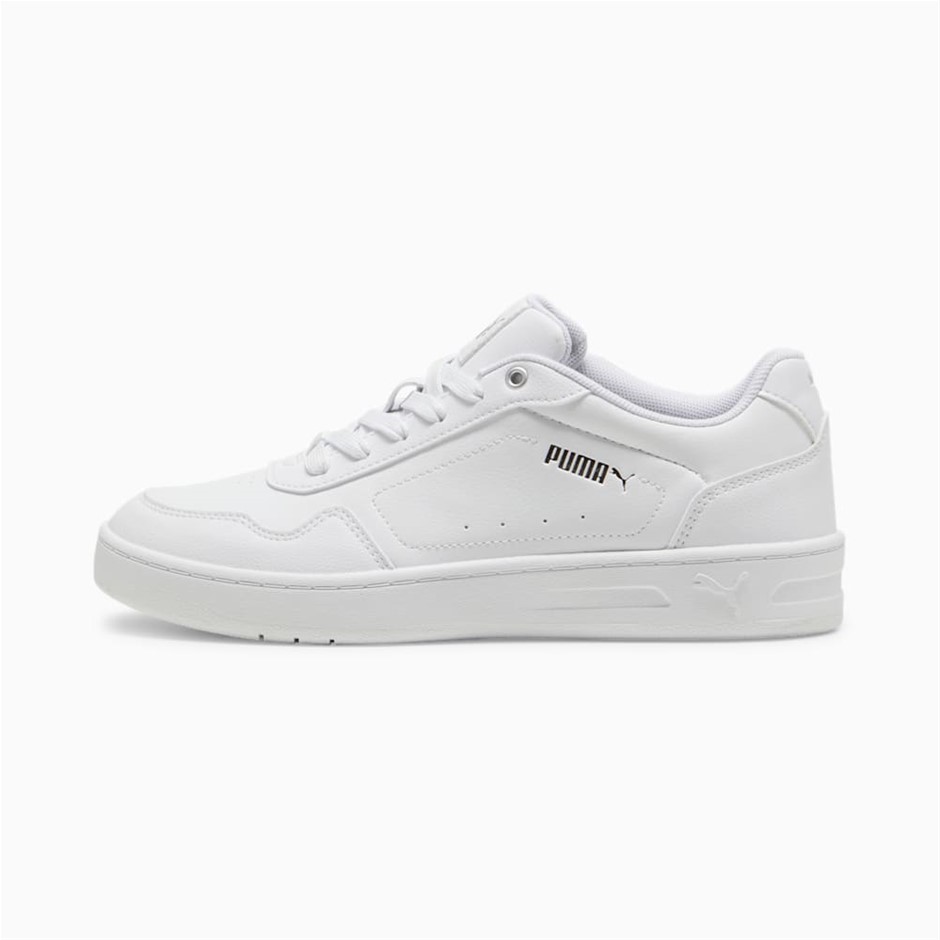 PUMA Women`s Court Classy Sneakers, Size US7.5, White/Silver (01), 184747. NB: worn w/ dirt stains/faint stains. (Code: 395021-WHI-7.5-U2) (333443-39)