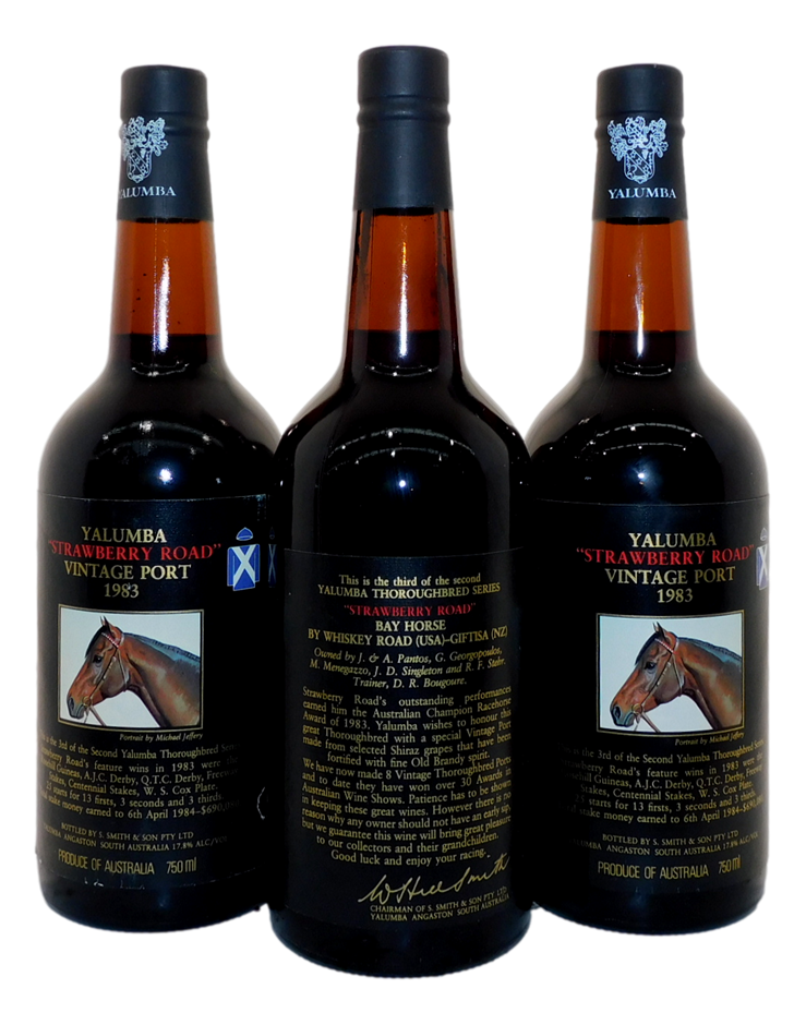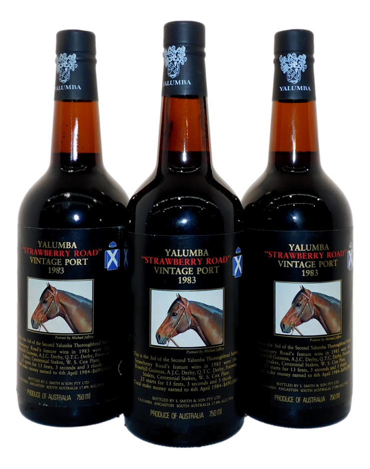 Yalumba Throughbred Series Strawberry Road Vintage Port 1983 (3x 750mL), SA,Cork Closure (299890-2)