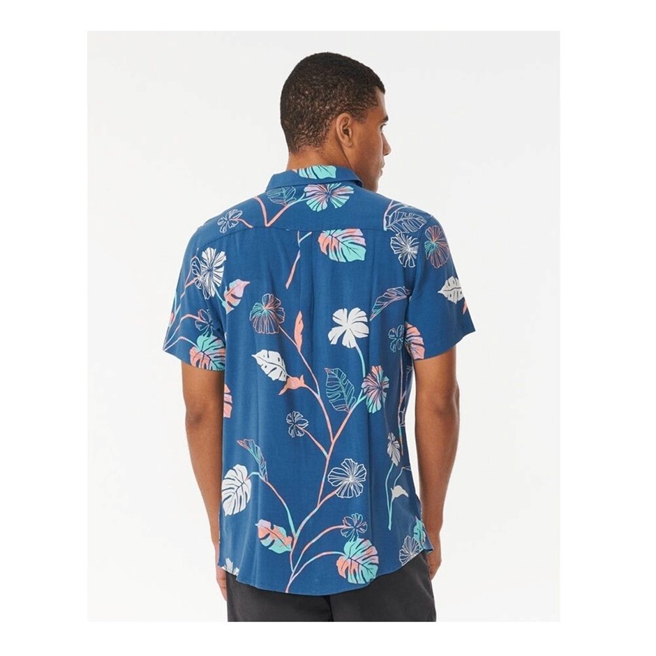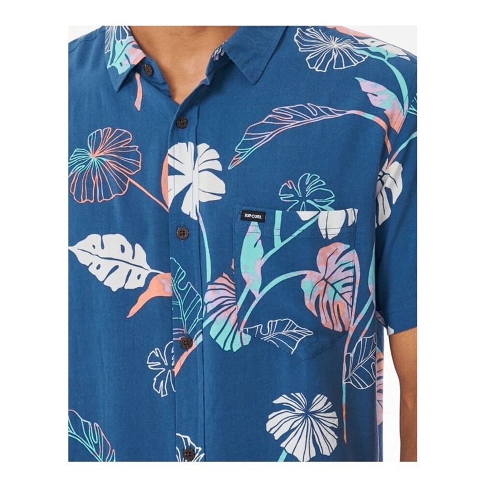 RIP CURL Men's Mod Tropics Short Sleeve Shirt, Size L, Washed Navy. RRP: $8