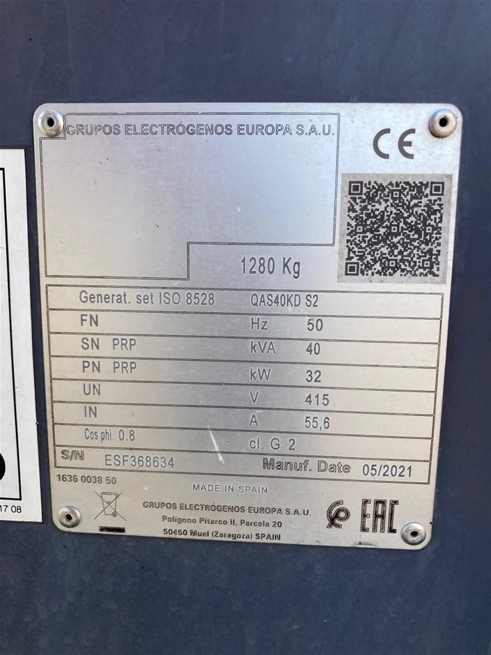 2021 Atlas Copco QAS40 Generator - Diesel - 40kva