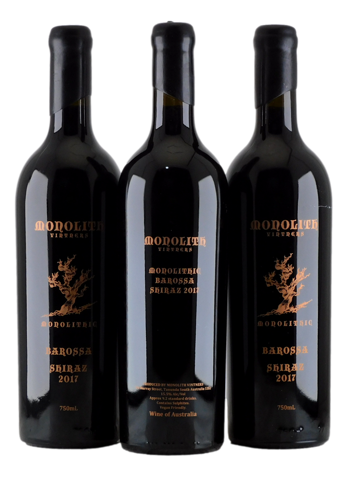 Monolith Vintners Monolithic Shiraz 2017 (3x 750mL), Barossa. 5* Prov.