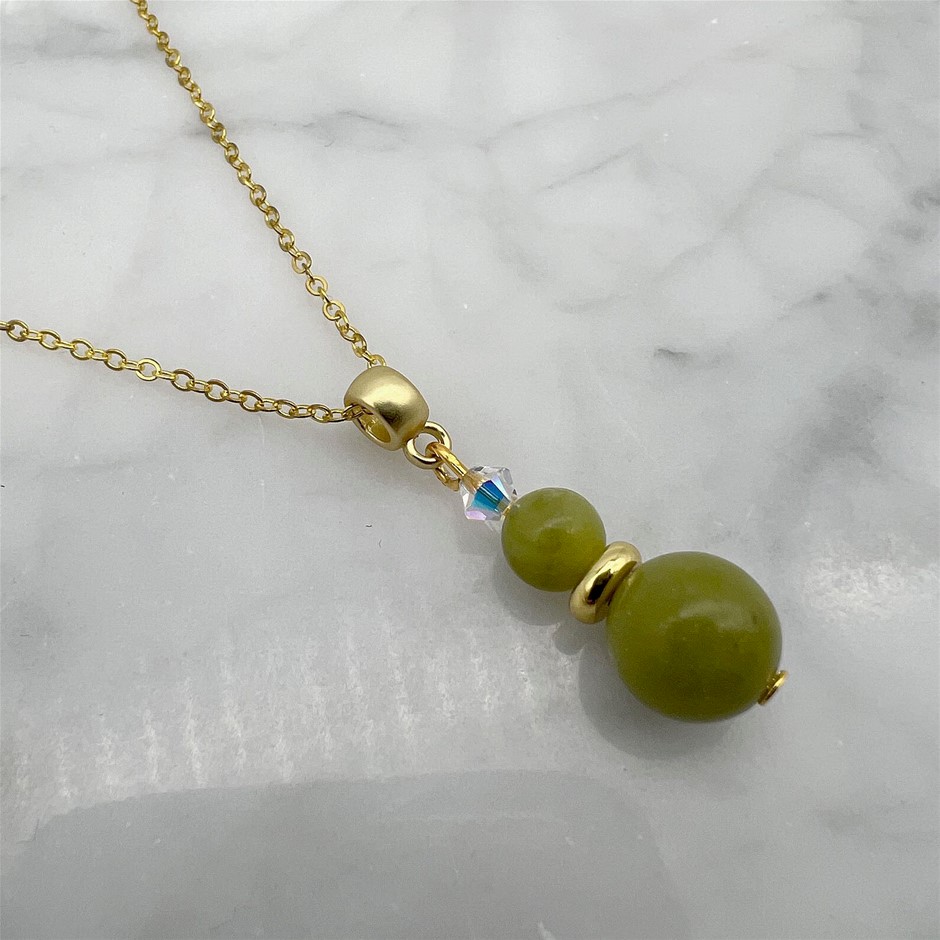 Genuine Peridot & Swarovski® Austrian Crystal Gold Plated Pendant Necklace
