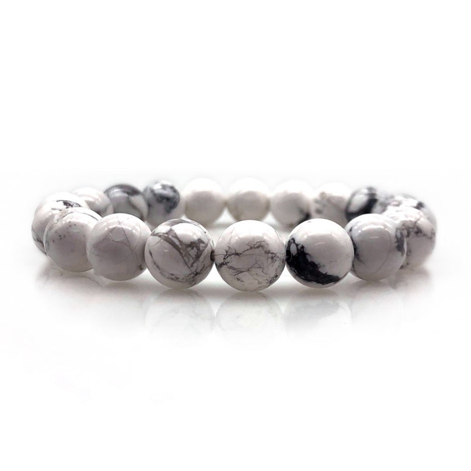 10mm Natural Gorgeous Semi-Precious Howlite Gemstones Crystal Beaded Bracelet.