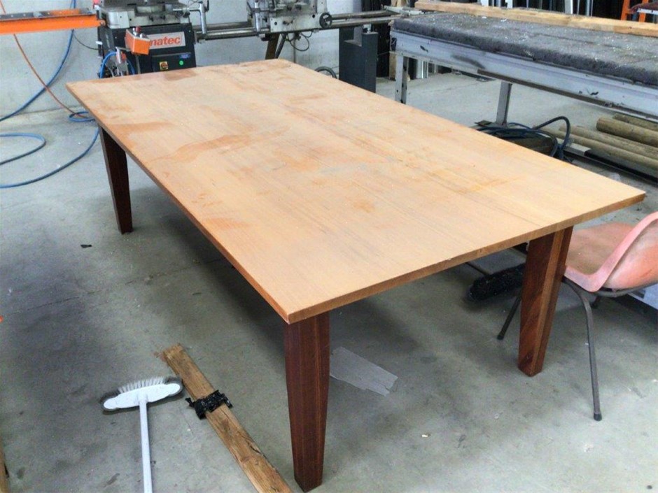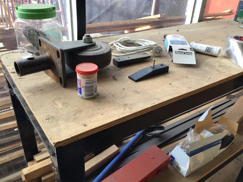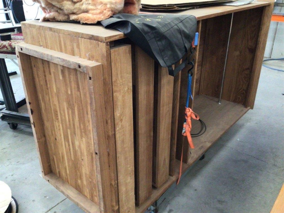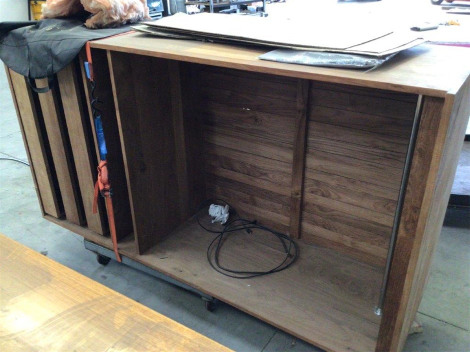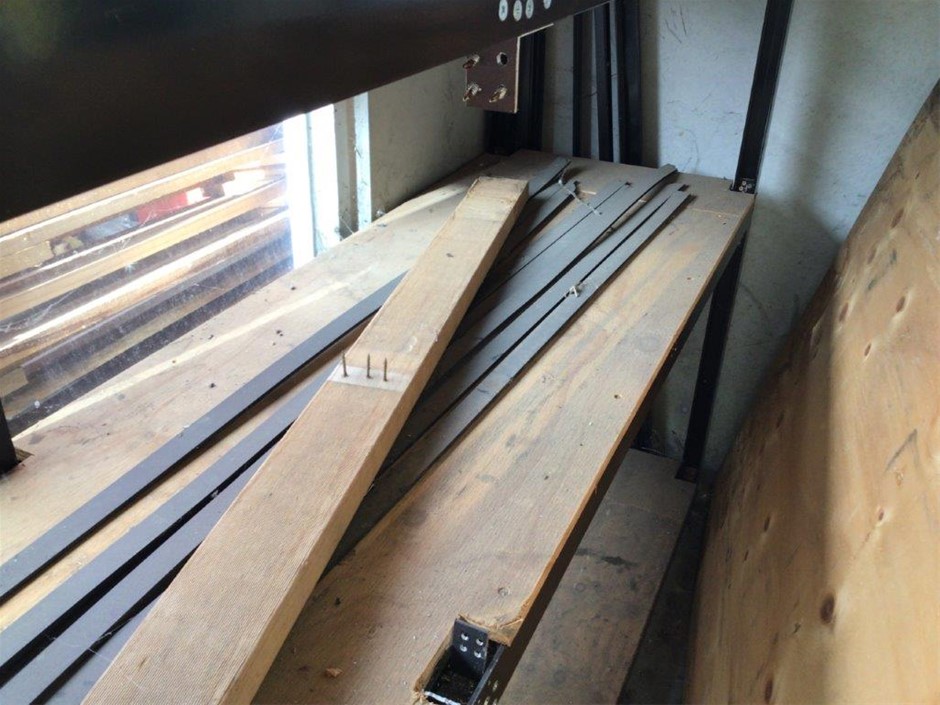 Steel Shelving Unit, Timber Table, Timber Storage Unit