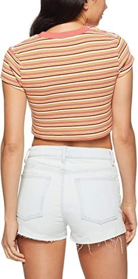 LEE Women`s Crop Stripe Skinny Tee, Color Multicolored Stripe Size 12. (Code: B07KW2JHZJ) (139829-41)