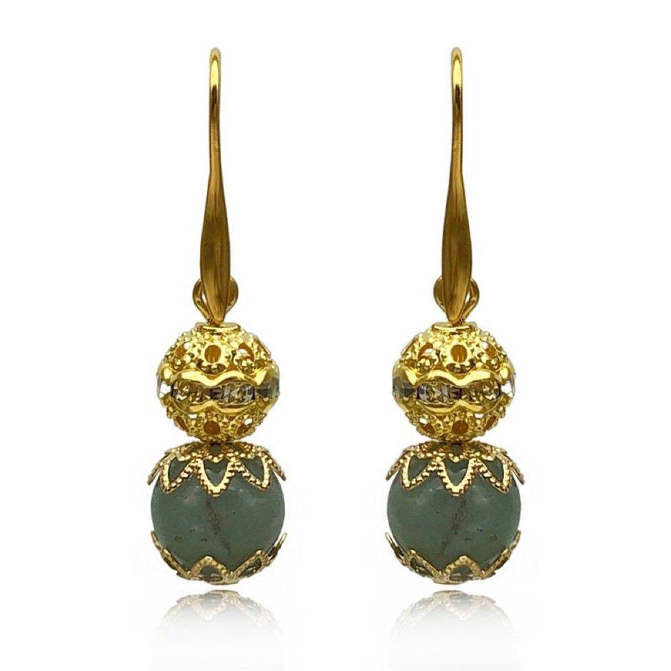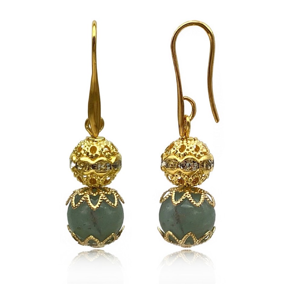10mm Natural Amazonite Persian Love Gold Plated Rhinestone Necklace, Bracelet & Earring Set.